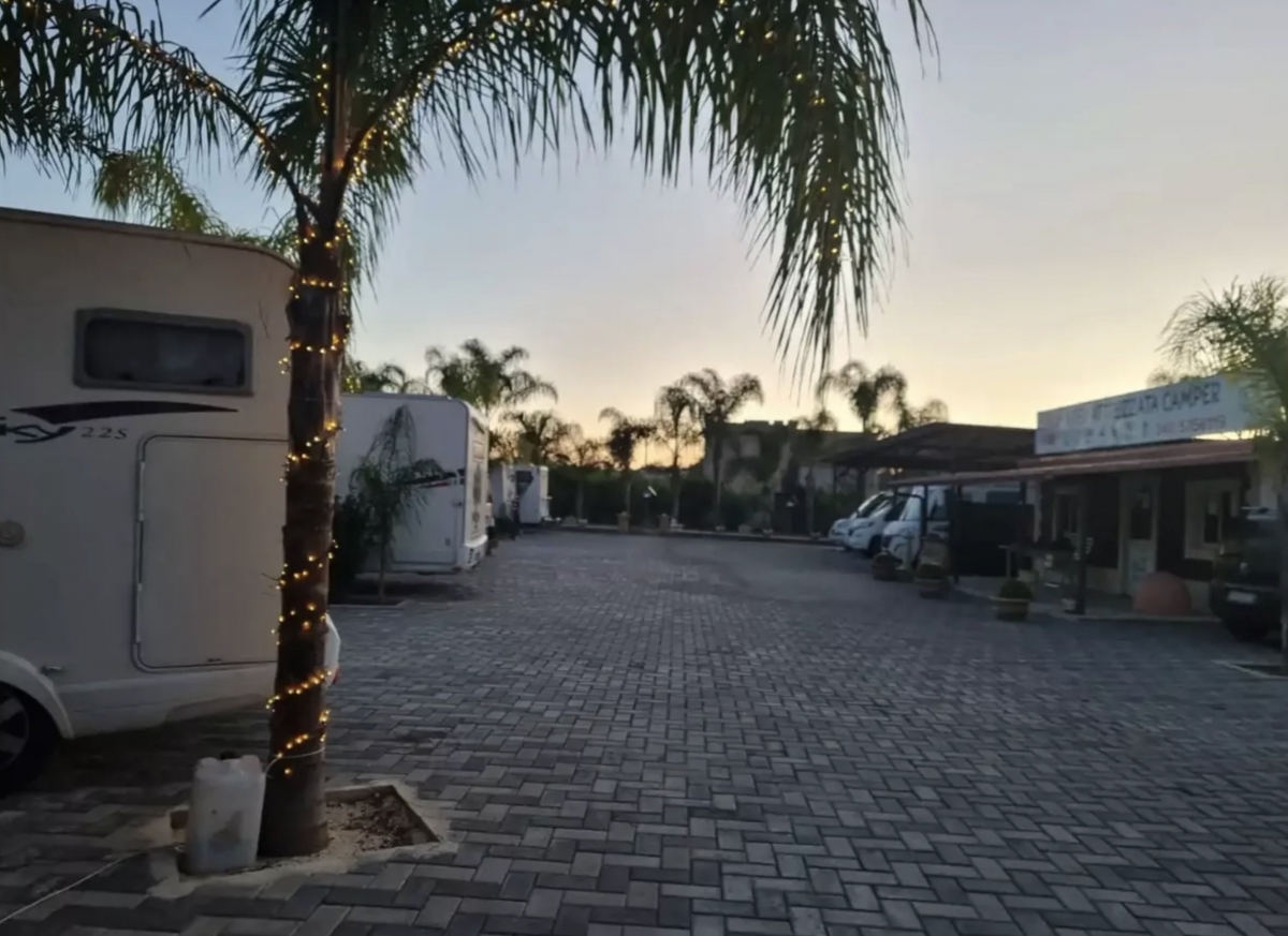 Area di sosta con tutti i servizi da campeggio. Stalli grandi con elettricità. Gestore disponibile e gentile (a noi ha procurato una bombola di gas), mette a disposizione un servizio navetta a pagamento per Siracusa e ritorno. Ok camper service, da migliorare docce e bagni.
