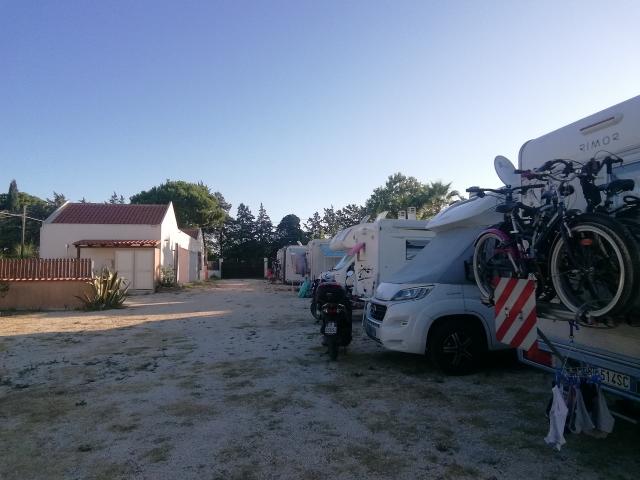 Piccola area sosta tra mura. Sole pieno. Il gestore non lo trovi mai, si può trovare al chiosco sulla spiaggia. Non risponde nemmeno al tel. in quanto impegnato a cucinare, senza buoni risultati tra l’altro. Lasciare il lavoro a chi lo fa di professione! Costo: 1 notte 30€. Piccola spiaggia sabbiosa, libera, sempre piena in quanto pubblica. Servita da colonnine corrente elettrica, tiene l’aria condizionata. Ghiaia nella piazzola. Camper service, servizi igienici con docce acqua calda, lavatrice, lavello stoviglie. Animali ammessi di piccola taglia. Chiamare prima! Area sosta per una notte, e siamo ripartiti.