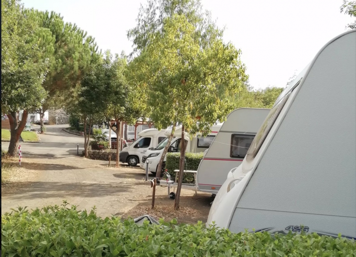 Struttura disposta su grandi terrazzamenti soleggiati e all'ombra, con piazzole camper, caravan e tende 60-80 mq, delimitate da alberi ad alto fusto e siepi Ogni piazzola è dotata di colonnine con allaccio elettrico da 6A e rubinetto di acqua potabile. Sono presenti: camper service per i clienti interni ed itineranti, gruppo servizi sanitari uomo/donna con acqua calda e docce, lavelli stoviglie, lavatoi e lava piedi, zona BBQ con sei postazioni separate e tavoli da picnic, uno spazio verde attrezzato con giochi per bambini, zona dedicata alla raccolta differenziata, parcheggio interno custodito per auto e moto.