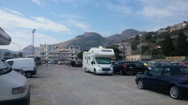 Parcheggio a pagamento situato all'interno del campo sportivo di Letojanni (il campo di gioco è stato trasformato in parcheggio). Solo sosta e poca ombra ma molto capiente e proprio sul mare.