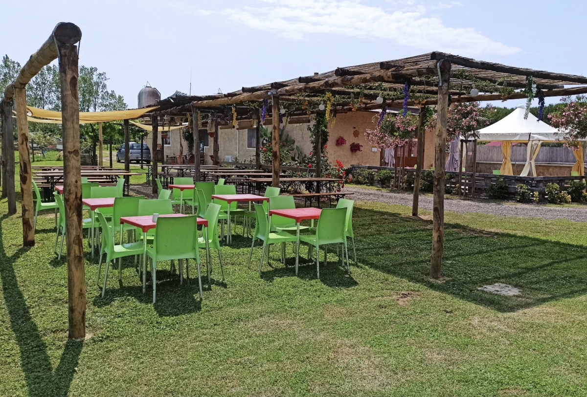 Sono presenti servizi igienici anche per disabili, postazione carico/scarico, tettoie ombreggiate con tavoli e panche, locale ristorante agricolo. Punto vendita con prodotti freschi di stagione e altro.