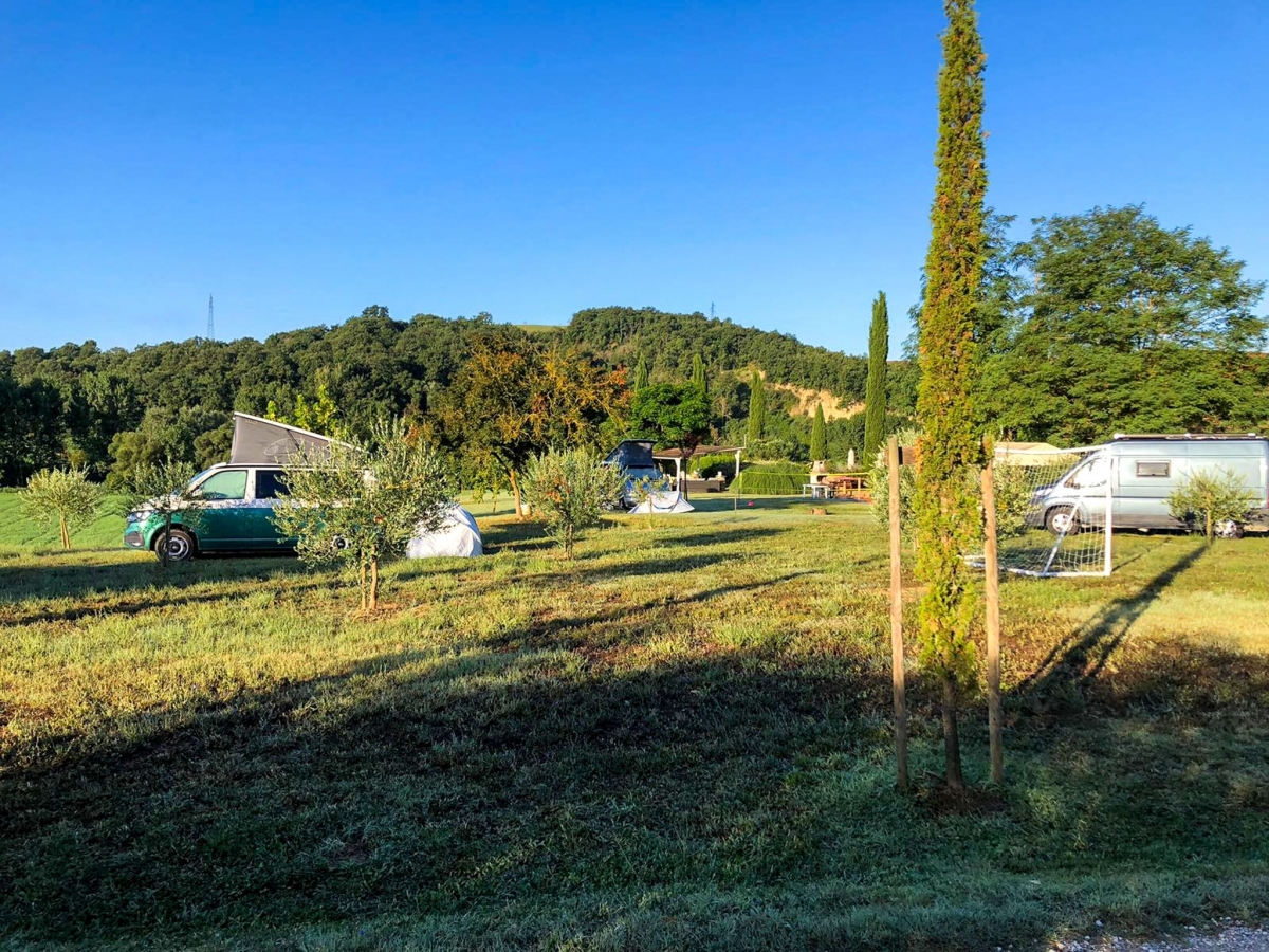 Immerso nel cuore delle crete senesi l'agriturismo dispone di 4 appartamenti e agrisosta illuminata con 6 piazzole camper ombreggiate e disposte su un ampio terrazzo naturale con vista panoramica sulla vallata.