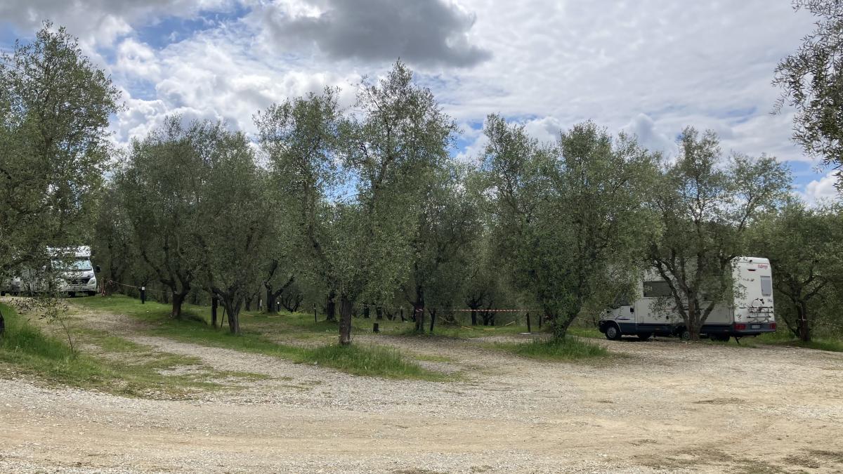 Ci siamo andati venerdì 18 Aprile. Il posto molto accogliente con i proprietari. Abbiamo parcheggiato tra gli ulivi senza alcun rumore di auto. Carico e scarico, bagni e docce calde. Ho letto i menù del ristorante molto accattivanti e i prezzi più che onesti. I mezzi per andare in centro si trovano a un paio di cento metri e i biglietti li vendono all'agriturismo. Un fatto che ci ha fatto molto piacere e che voglio elogiare i senesi è questo: la mattina di sabato siamo usciti a piedi e mentre ci dirigevamo alla fermata del bus, pioveva, un signore si è fermato con la sua auto e ci ha offerto gentilmente un passaggio per il centro città. Dopo aver parcheggiato ci ha accompagnato fino al capolinea dei bus indicandoci la fermata del numero 36 che dovevamo prendere per rientrare.