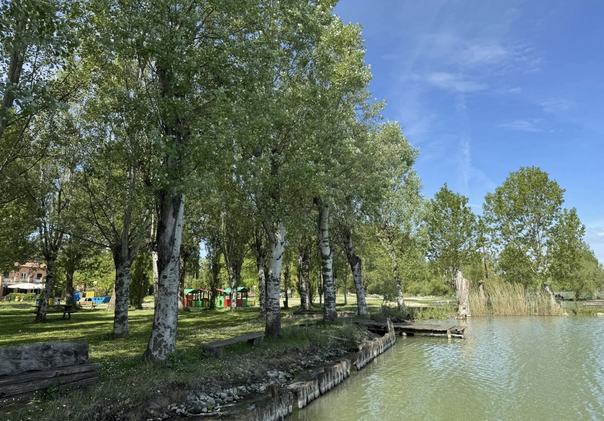 Immersa nella campagna toscana e a 3 km dal centro, l'area sosta sul lago di Chiusi dispone di 13 ampie piazzole su manto erboso ombreggiate e delimitate con allaccio elettrico.