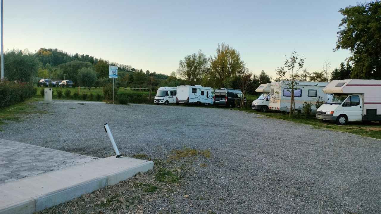 A poche centinaia di metri dal Centro e dalle Terme di Casciana, area comunale recintata, a pagamento con 11 stalli, su stabilizzato, colonnine per il pagamento, allaccio elettrico, camper service.
