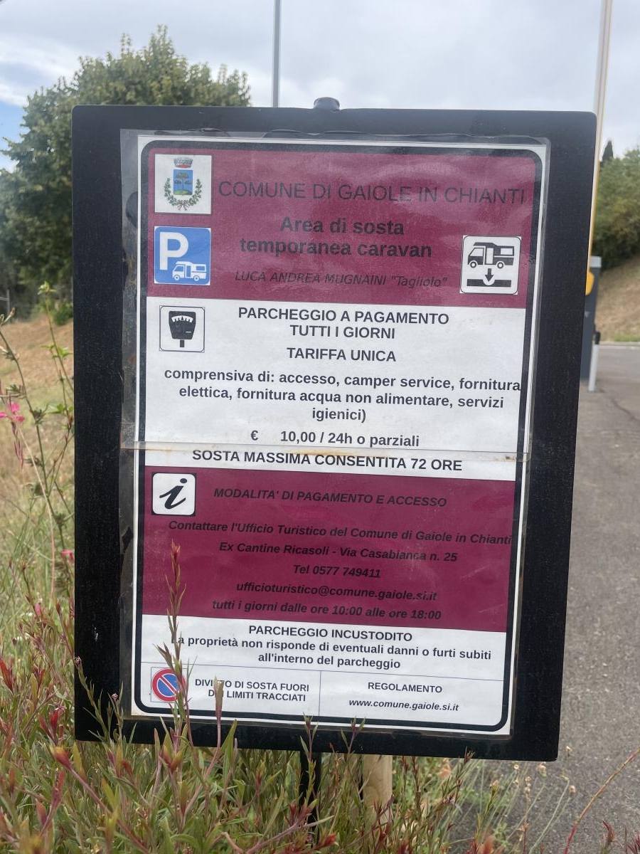 Servizi: carico/scarico, elettricità, servizi igienici con docce, servizi per disabili, zona lavaggio panni, lavaggio stoviglie.