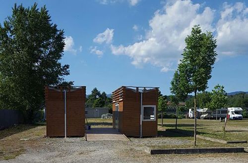 L’area è dotata di posti di dimensioni generose e sufficienti, allaccio elettrico, bagni e docce, lavabi e area comune, con bracieri e tavoli. Per accedere è necessario chiamare il numero di telefono esposto accanto al cancello d’ingresso.
