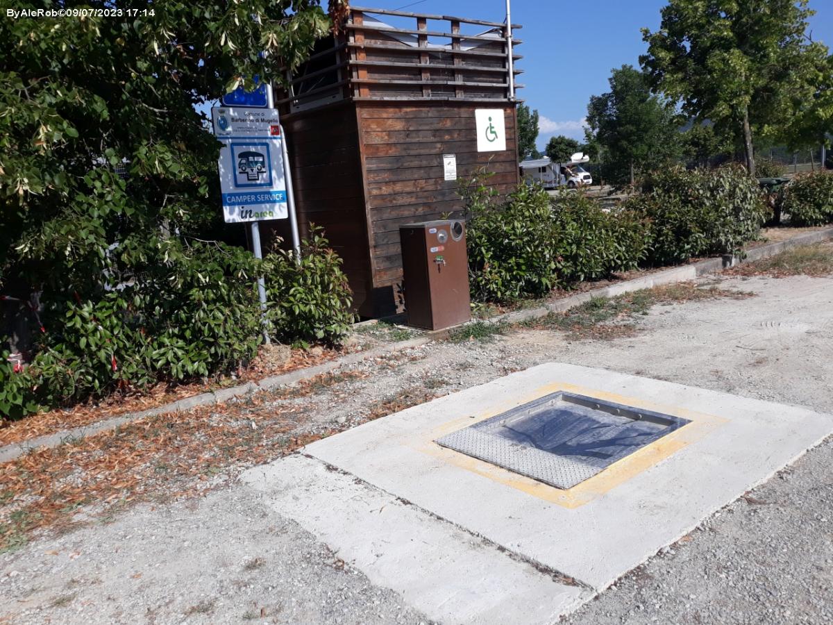 Gestita dal 2021 dalla Pro Loco Barberino, l'area dispone di piazzole camper delimitate su erbablock, reception per turisti, strutture in legno con servizi igienici, docce, lavatoi e lavelli stoviglie. Due camper service segnalati e carico acqua.