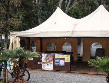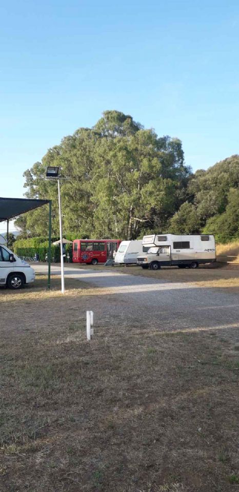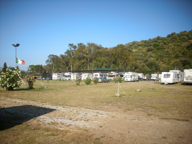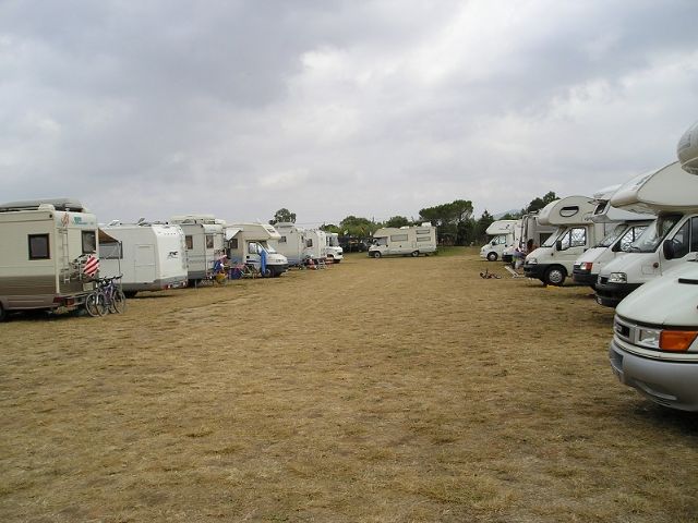Sulla laguna di Orbetello, in direzione Porto Ercole, vicino alla duna della Feniglia, area a pagamento, sterrata, parzialmente ombreggiata, recintata, carico/scarico, tavoli picnic e barbecue.