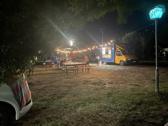 Ottima area di sosta, dentro a un parco naturale, la gestione è gentile e brillante, l'unico problema è che essendo dentro a un parco non è possibile aprire il tendalino e alla sera bisogna chiudere tavoli e sedie, ma a mio avviso 10 stelle le vale tutte per quello che offre.