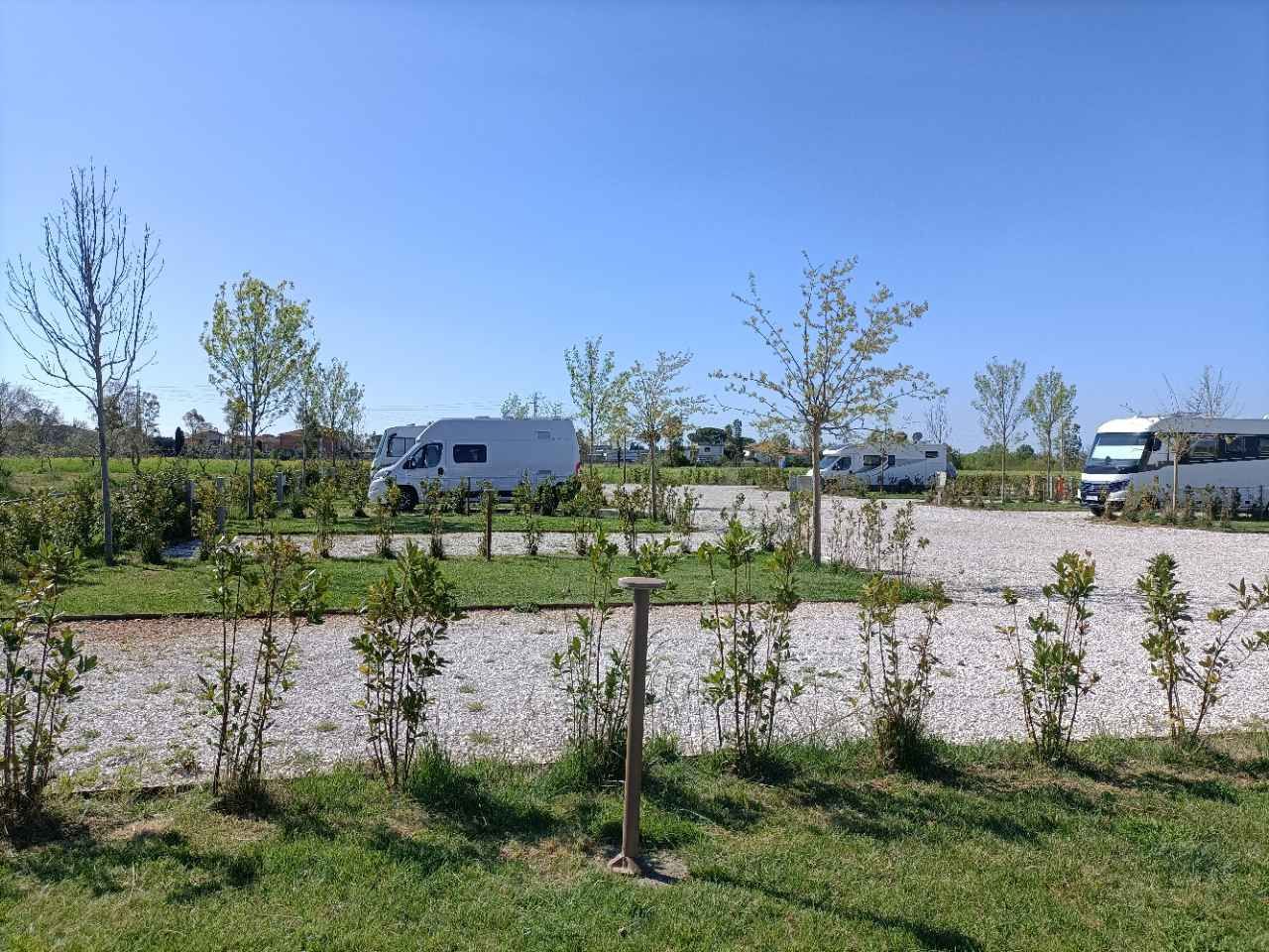 Bellissima area sosta nel verde. Piazzole ampie, corrente ed acqua in piazzola. La torre raggiungibile in bicicletta in dieci minuti (solo primo tratto su statale) oppure autobus. C'è il ristorante nella struttura.