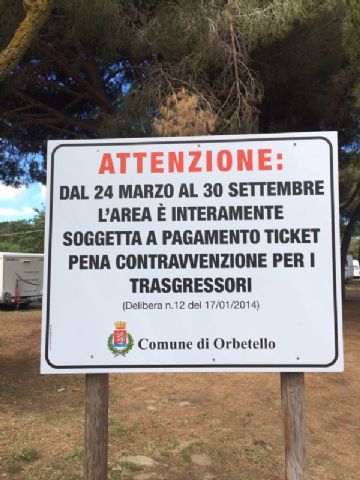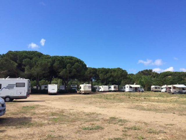 A 200 m dalla spiaggia libera, lontano dal centro ampio punto sosta sterrato, lungo tutto il tombolo della Giannella, sosta diurna a pagamento, notturno gratuita, non illuminato, nessun servizio.
