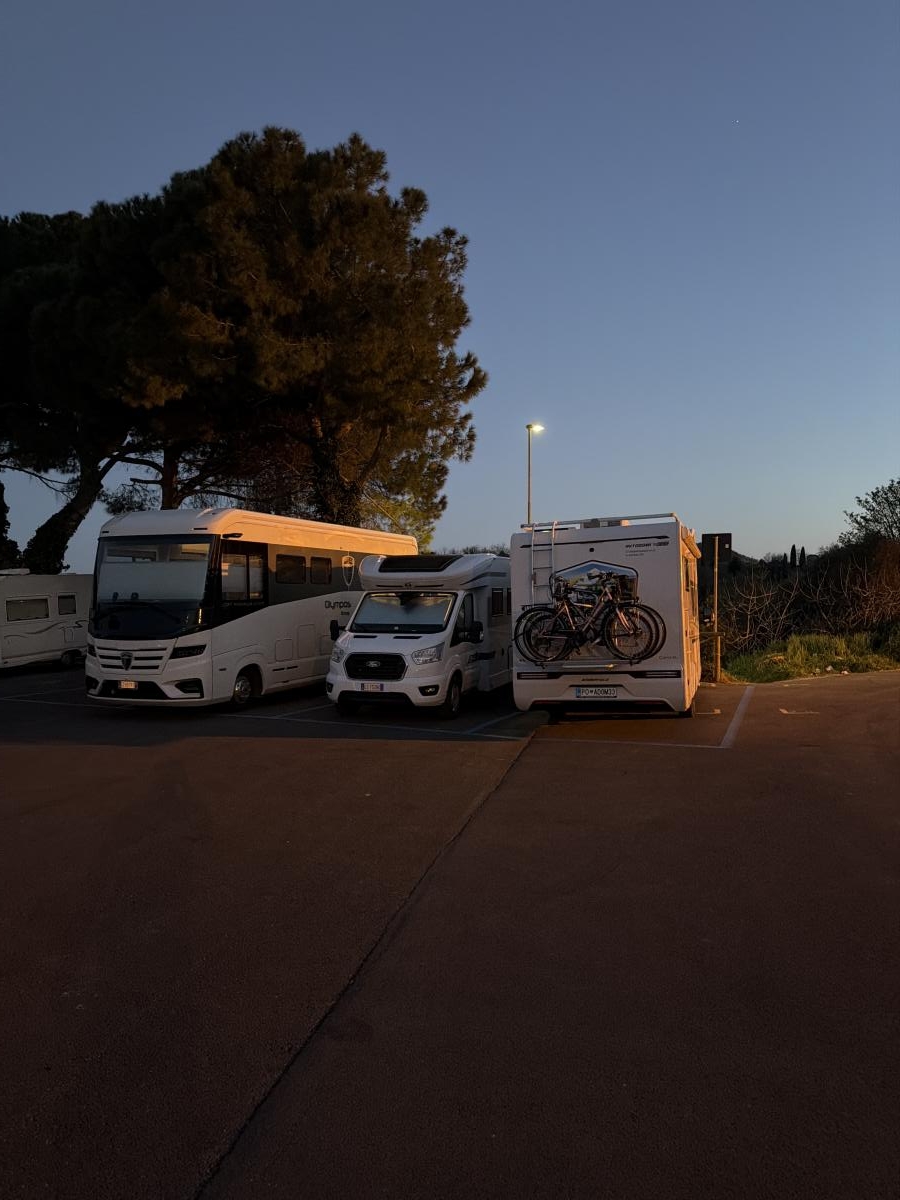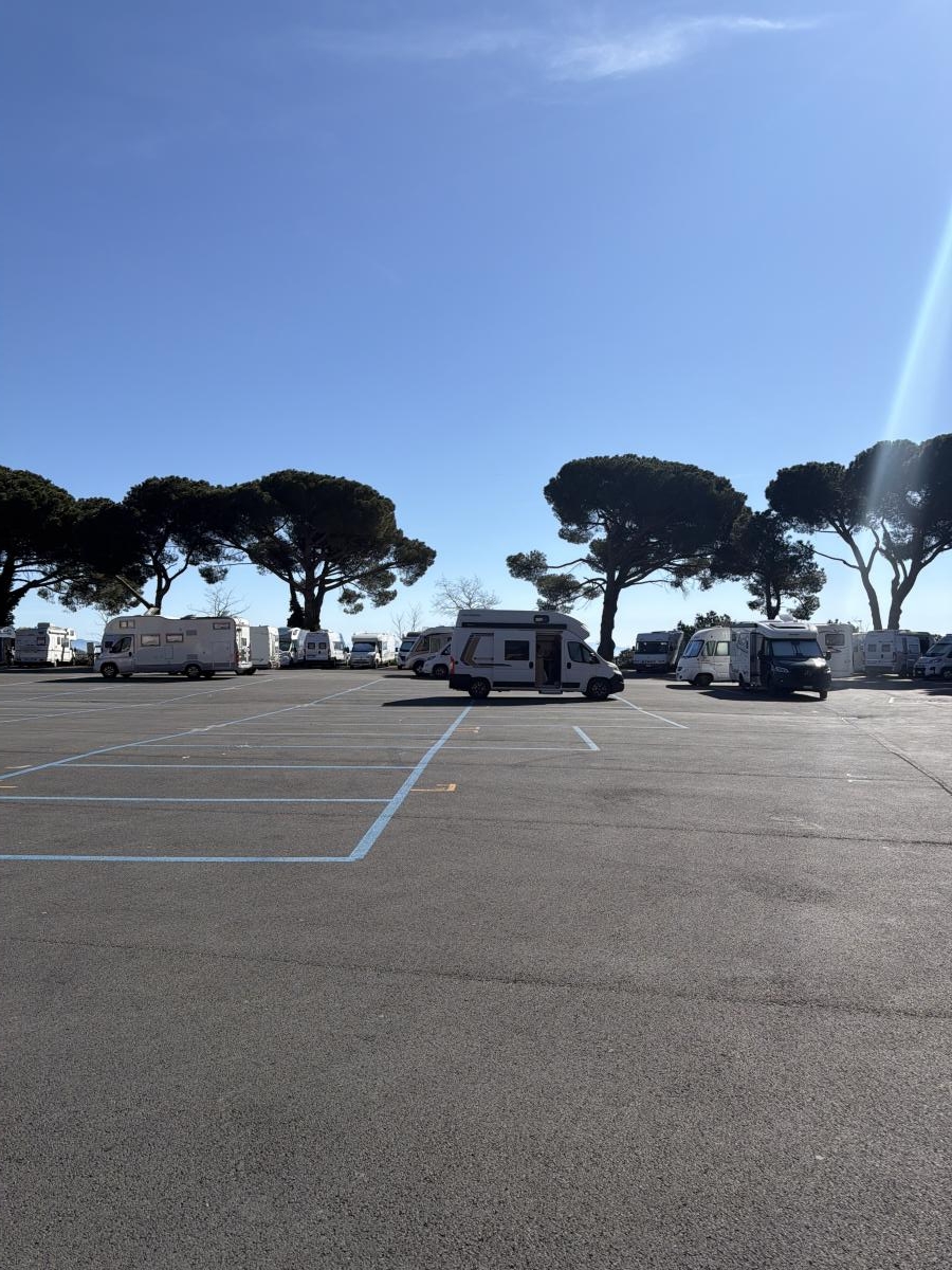 Ampio parcheggio facilmente raggiungibile e con un panorama bellissimo. Sosta economica (6 euro per la notte), rifornimento acqua possibile, scarico acque grigie (un tombino) non facilmente individuabile, scarico acque nere non trovato! Centro storico vicinissimo, raggiungibile con una breve passeggiata di 10 minuti. Supermercato Conad a 2 minuti a piedi, molto comodo!