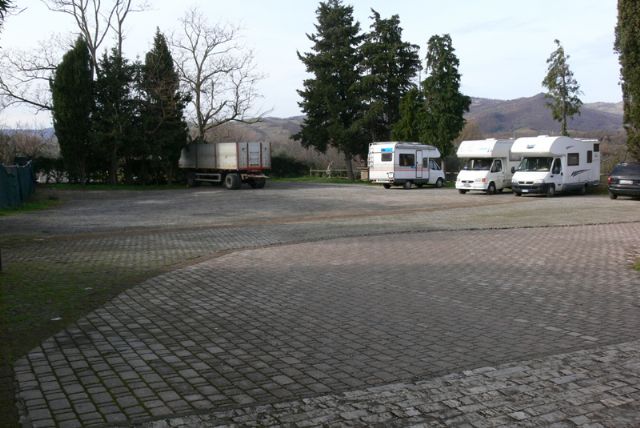 A pochi passi dalla frazione di Sovana e di fronte al frantoio (vendita diretta EVO), punto sosta comunale anche per camper, a pagamento, leggermente in pendenza su stabilizzato, nessun servizio eccetto WC pubblici.