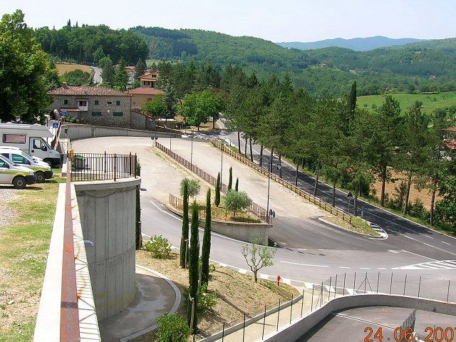 Dalla piazza di Ponte a Poppi seguire le indicazioni per Poppi, attraversare il ponte sull'Arno, al primo tornante (indicazioni parcheggio camper) prendere la stradina sulla destra, stretta tra un muro ed un a casa, e proseguire diritti fino ad un piccolo ponte, prendere a sinistra, proseguire per qualche centinaio di metri fino a che non si incontrano i segnali: il parcheggio è sulla sinistra.
