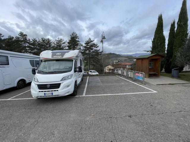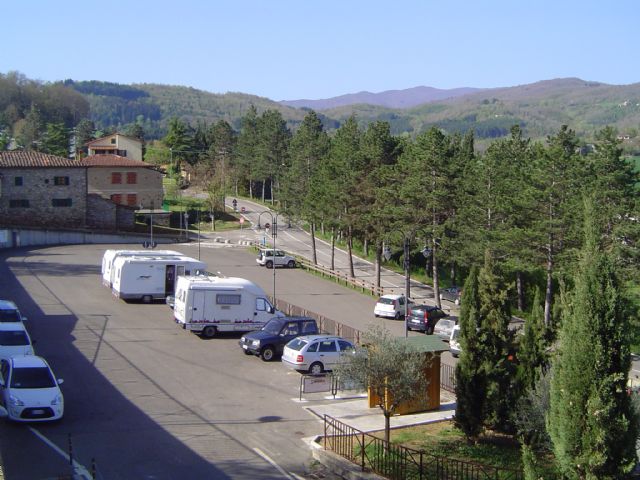 Non salire con il camper a Poppi perché il transito ai camper è vietato, utilizzare il parcheggio e recarsi in paese a piedi.
