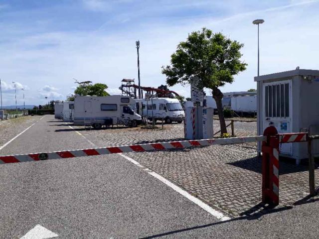 Vorrei segnalare che l'area sosta camper in bassa stagione è proprio chiusa da una sbarra. A lato dell'area chiusa, comunque, c'è l'ampio parcheggio dell'Acqua Village che in bassa stagione è gratis. Ci sono un paio di enormi caravan stanziali e un paio di camion, ma la gente del posto dice di non preoccuparsi che sono di persone tranquille, giostrai della zona.