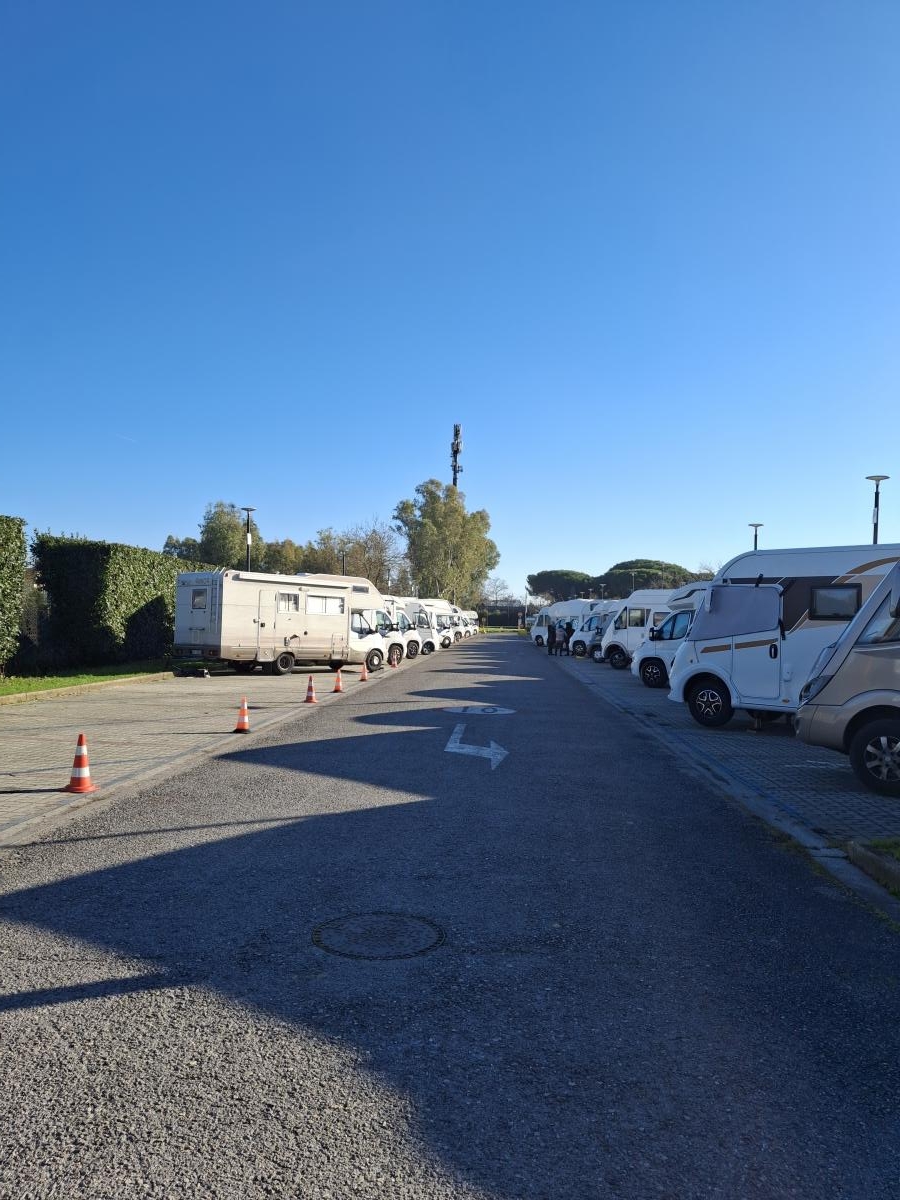 Area sosta tranquilla e ben segnalata, gestori gentili e disponibili. Il centro è raggiungibile con la linea E la cui fermata è davanti all'area. Consigliata.