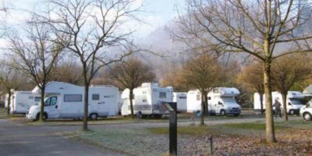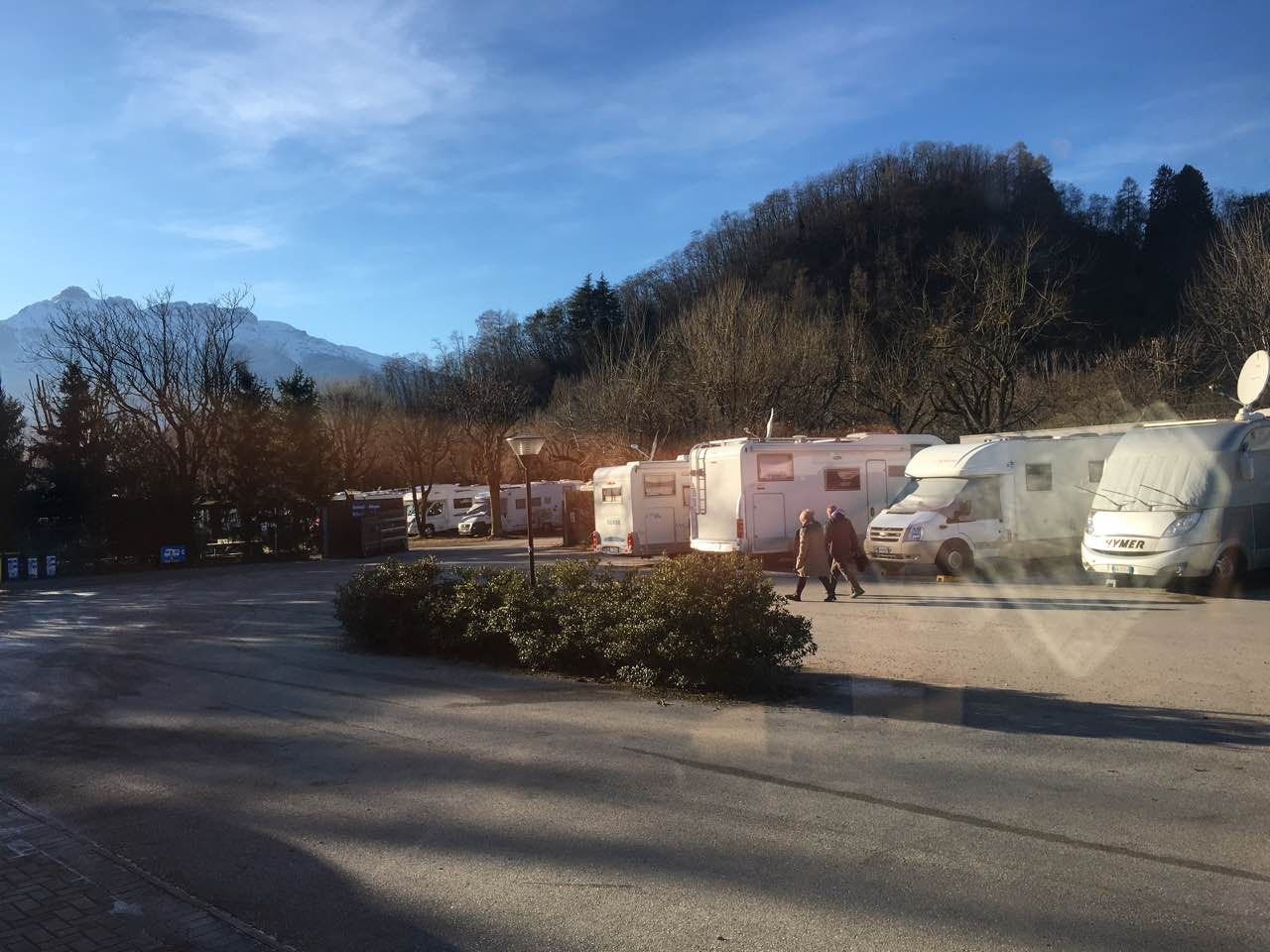 Area Camper su autobloccanti, vicino al Camping Due Laghi, 24 piazzole con allacciamento elettrico, wifi gratuito, zona carico e scarico camper, piccolo blocco servizi.