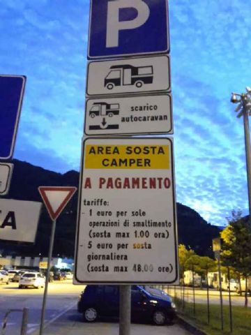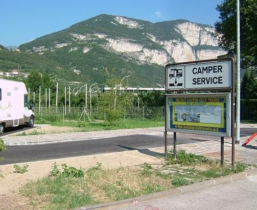 Presso il casello Trento centro, segnalato, asfaltato, 6 posti per i camper, C/S comodo, a pagamento, fermata navetta per il centro a circa 200 metri.