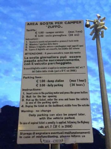 Discreto... ricordatevi di essere forniti di moneta (€5 /24 h) per l'accesso all'area. Se imboccate l'ingresso non avrete modo di invertire la marcia per cui almeno €1 che vi permette l'ingresso e la successiva uscita.