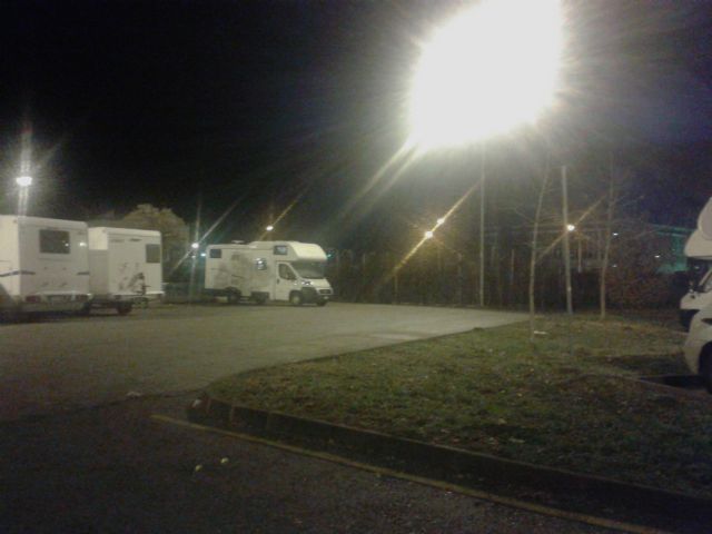 Parcheggio con C/S. Costo solo C/S euro 1, con max una ora di sosta. Costo pernottamento euro 5. Un poco isolato, con adiacente grande parcheggio auto e piccolo chiosco bar. Autobus per centro a 200 metri oppure a piedi, dicono 30 minuti.