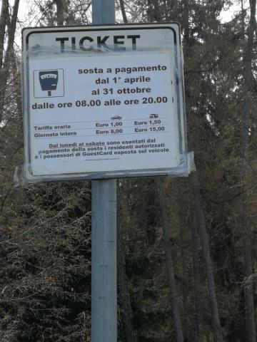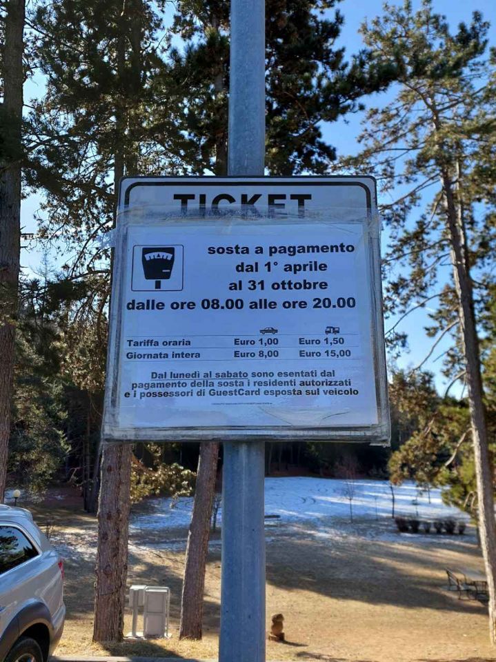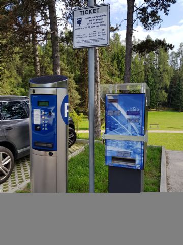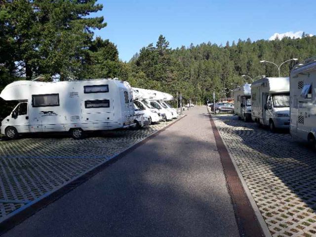 Sosta camper, in piano, immersa nel verde e fronte lago di Coredo, 15 posti riservati, solo parcheggio (no servizi camper), su autobloccanti, a pagamento (solo con monete su colonnina automatica, anche cambia monete) dal 1 giugno al 15 settembre dalle ore 10:00 alle 18:00. Esporre la ricevuta bene in vista.