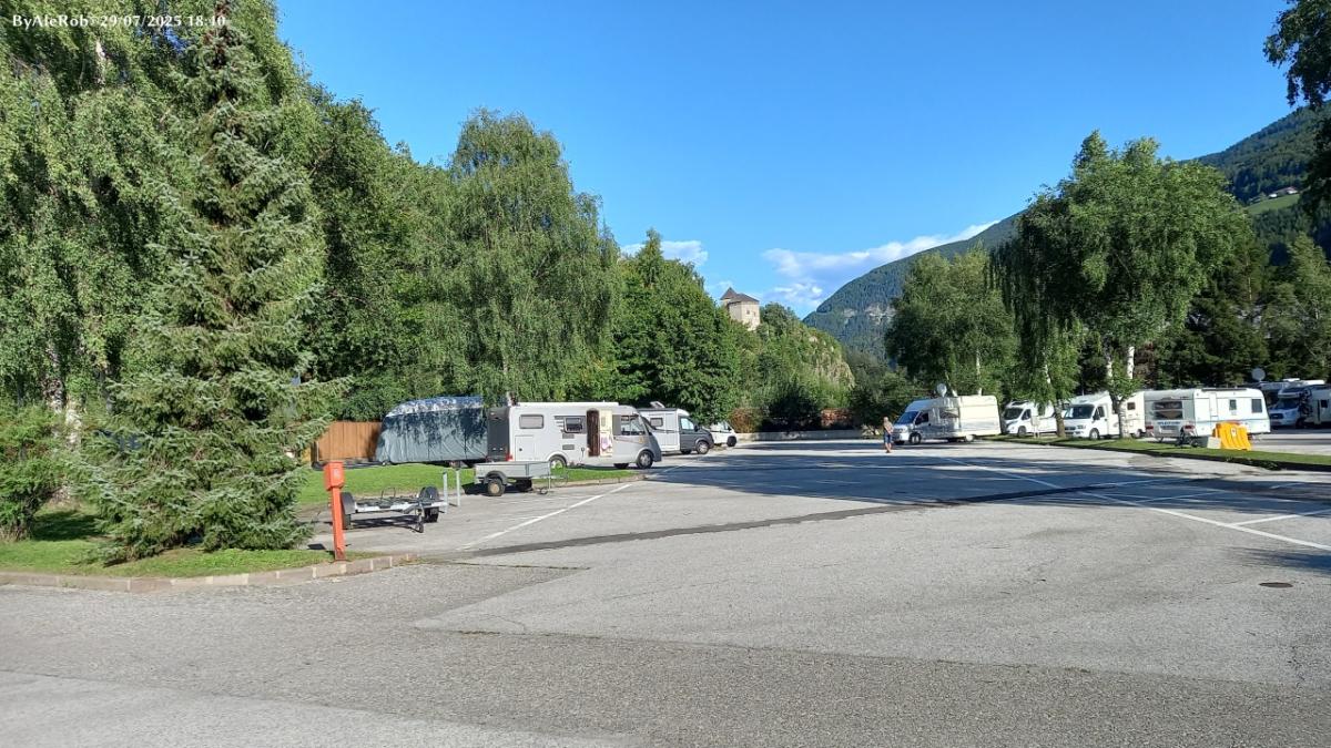 Tranquilla, non affollata nonostante fosse ferragosto, 17 euro con corrente e acqua.Sono due aree distinte: per chi arriva dall'autostrada e per chi arriva da Vipiteno.