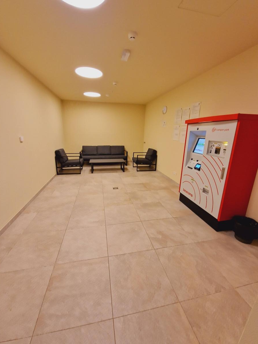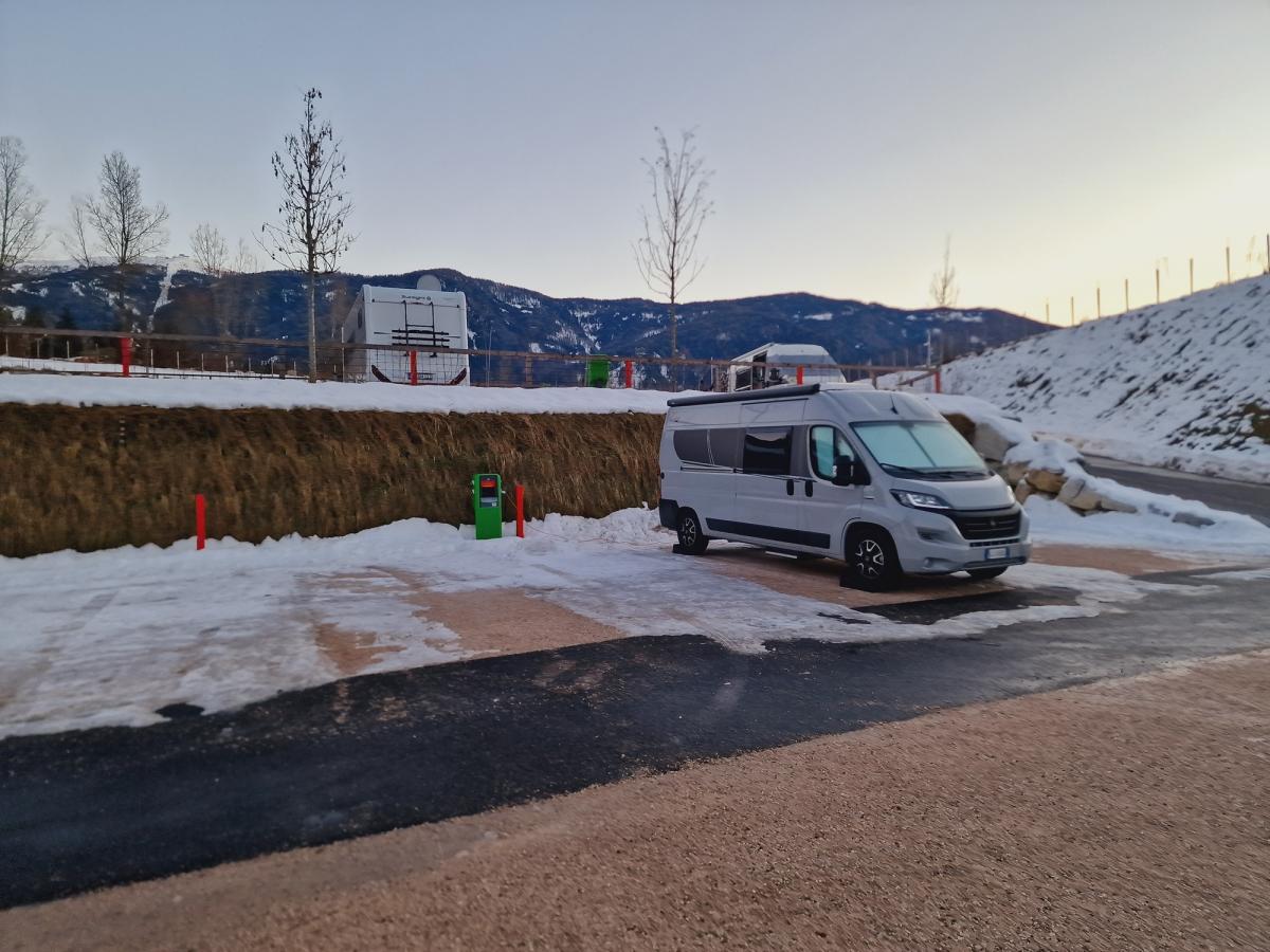 A circa 1 km dal centro città, area sosta a pagamento con cassa automatica (la tessera magnetica consente l'accesso dalla sbarra), recintata e video sorvegliata con circa 58 stalli per camper su ghiaia, disposti su terrazzamenti, allaccio elettrico, servizi igienici riscaldati con docce acqua calda, lavelli stoviglie, camper service (non agevole per tutti i camper), raccolta differenziata sostenibile dei rifiuti.