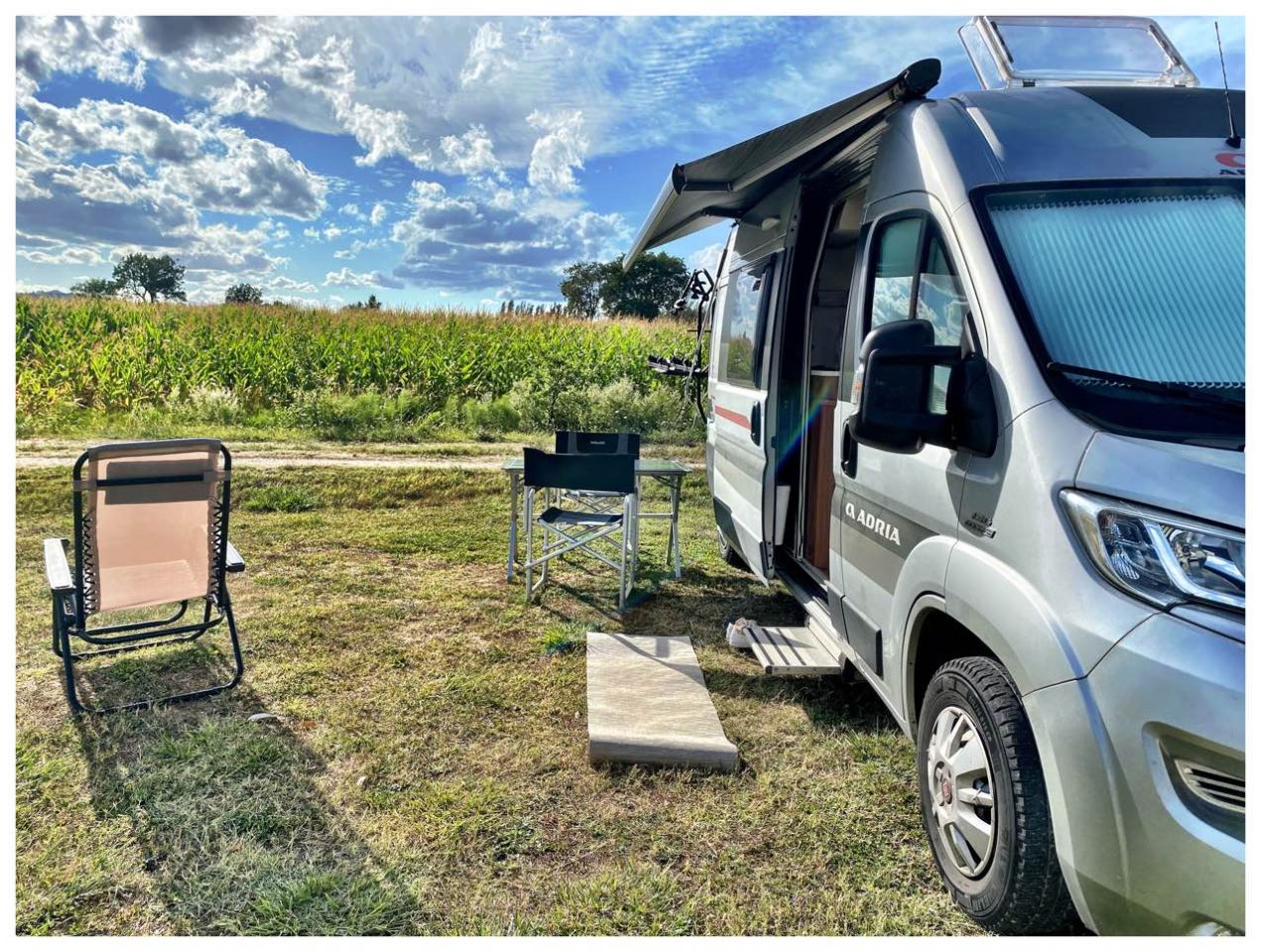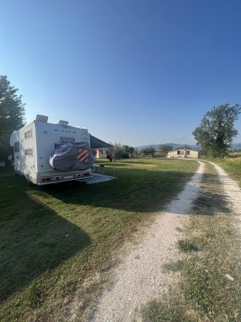 I gestori dell'agriturismo mettono a disposizione dei camperisti un'ampia area erbosa molto ben curata con corrente e colonnina dell'acqua. A pagamento piscina (€ 5) e doccia (€3). A circa 1 km si trova un negozio di noleggio e-bike. Gubbio a soli 5 km. Atmosfera amichevole e molto rilassante.