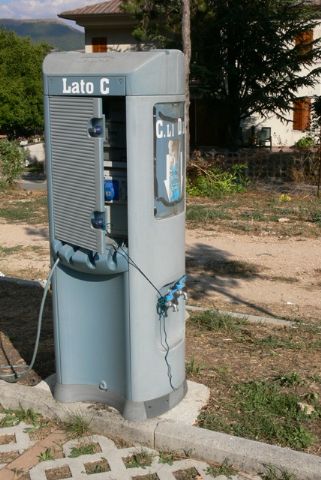 Raggiungiamo l’area camper di Colfiorito. Oggi 30/04/25 l’area è pulita e siamo in tre mezzi tutti fuggiti da Rasiglia. La colonnina per pagare è comprensibile e funzionante. Un gruppetto di 3 mezzi l’ha messo alla prova. Moneta e carte. Portate con voi la targa del mezzo. Davanti ha una isola/officina per ciclisti completa di pompa a spinta. E’ mercoledì pomeriggio nella parte più animata di Colfiorito e c’è tutto quel che vi serve in quel che era Campo Militare e poi campo di internamento. Adesso capisco a che cosa serviva la garitta che dall’alto sovrasta l’area camper. Il resto del paese merita una passeggiata. Grazie alla Comunità locale che mette a disposizione questa risorsa.