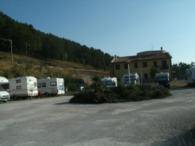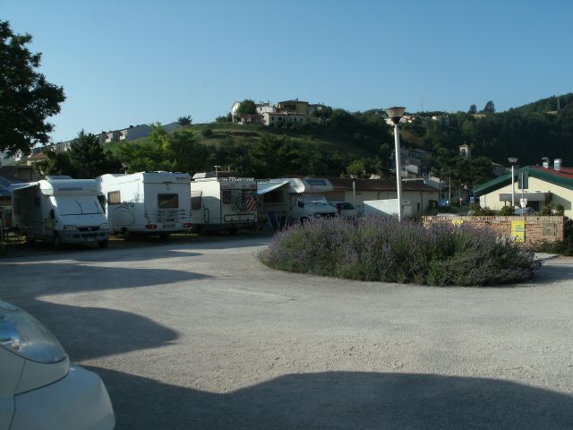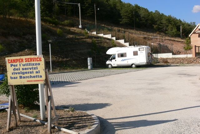 Comodo di fianco stazione dei Carabinieri, tranquillo di notte arrivi quando vuoi poi ti rivolgi al bar. Carico/scarico non comodissimo in mezzo al piazzale.Ho visto a Luglio molti stazionari che occupano 2 posti abbondanti.....
