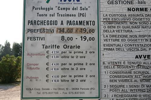 C/o Punta Navaccia (Trasimeno), ampio parcheggio sterrato ed alberato, illuminato, gratuito solo fuori stagione; spiaggia sul lago Trasimeno
