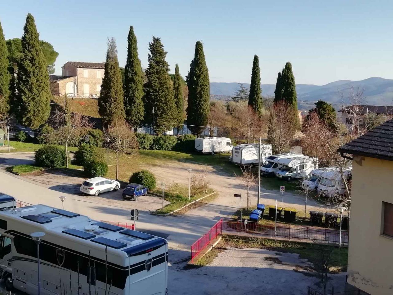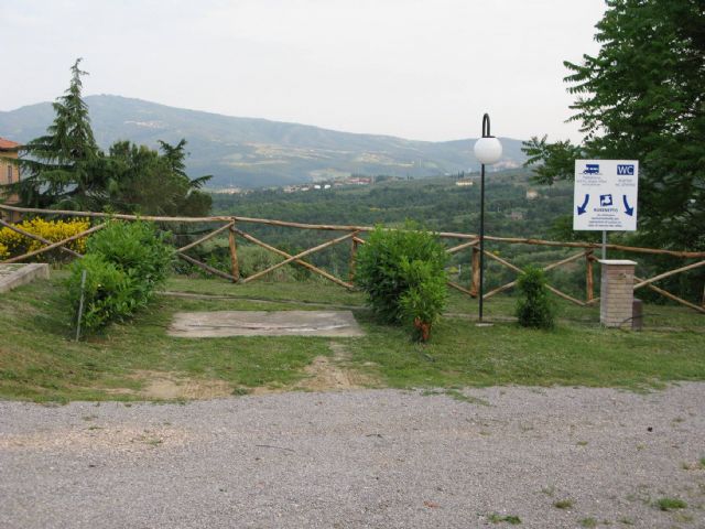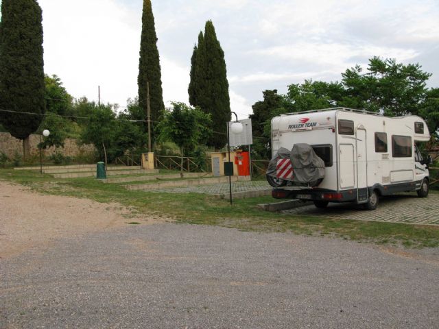 Area attrezzata comunale con 8 posti camper, dotata di acqua, luce e scarico per cassetta WC chimico.