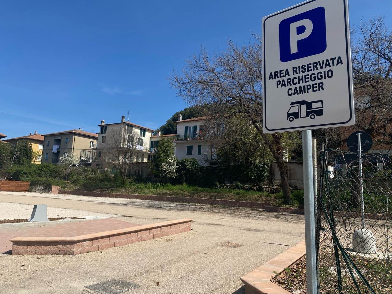 A ridosso della ex stazione della Spoleto-Norcia (ora dismessa) e a 5 minuti dal centri, nuova area comunale (inaugurata il 14/4/2022), con pagamento automatizzato, circa 30 stalli in piano con fondo in ghiaia, carico e scarico (entro metà giugno 2022 verranno attivate anche le colonnine elettriche). Zona scuola di polizia, vicino all'uscita Spoleto nord della SS Flaminia.