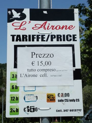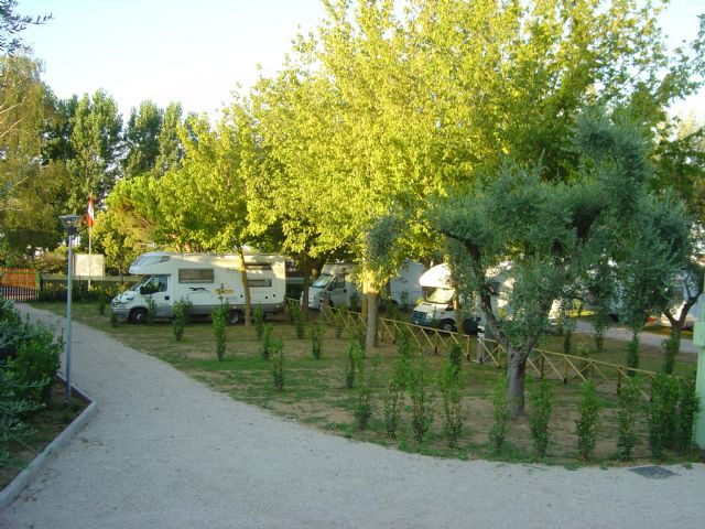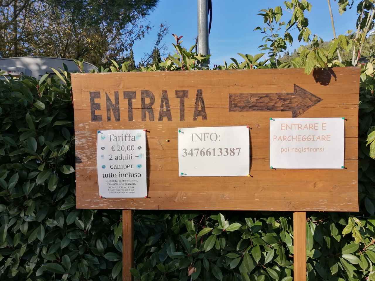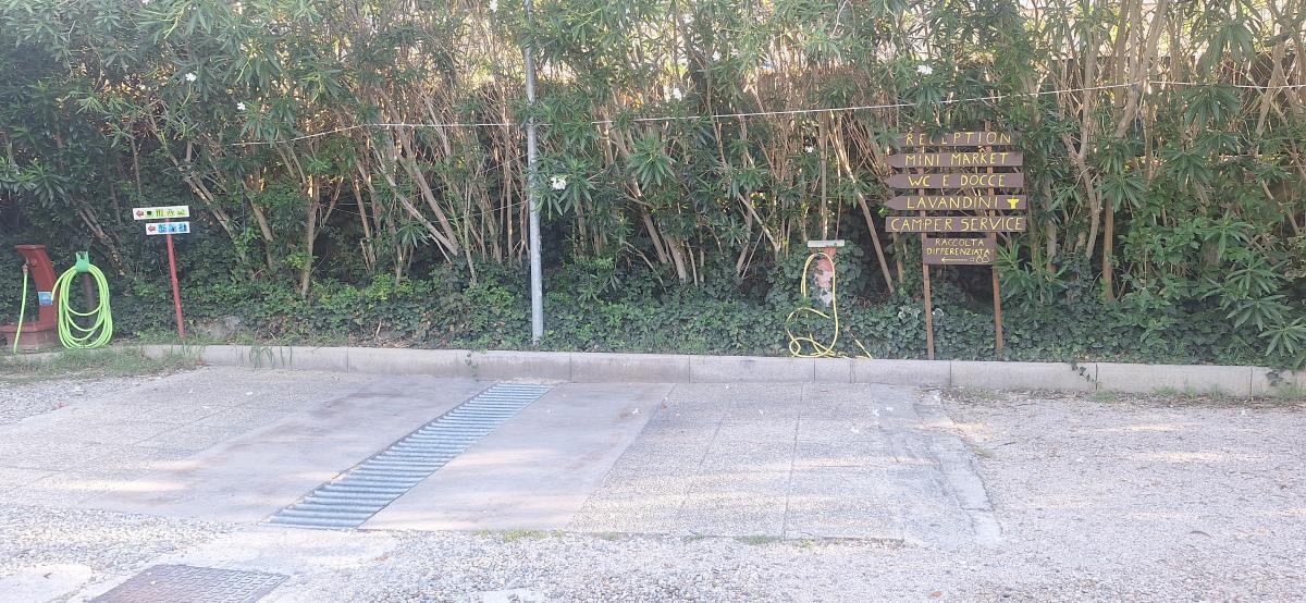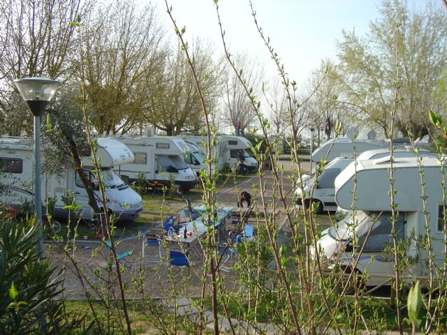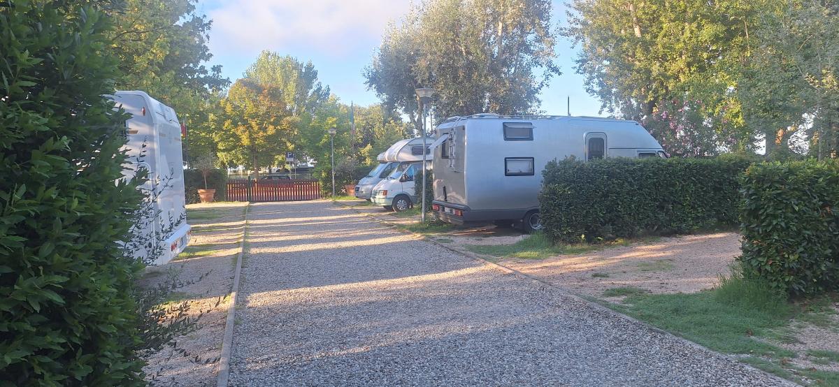 Molto bella per posizione e servizi (puliti), ombreggiata, €20giorno con equipaggio e tutti i servizi, CS, docce, lavelli, corrente e acqua in piazzola (grandi quasi come un campeggio) Possibile aprire tenda e posizionare tavolo e sedie. Spazi di manovra limitati ma fattibili. Nonostante sia vicino a strada e ferrovia è poco rumorosa, gestore disponibile e molto cortese. Comoda per passeggiate, pista ciclabile, spiaggia e centro con imbarco. Se ripasso da queste parti ritorno di sicuro!