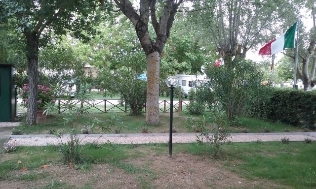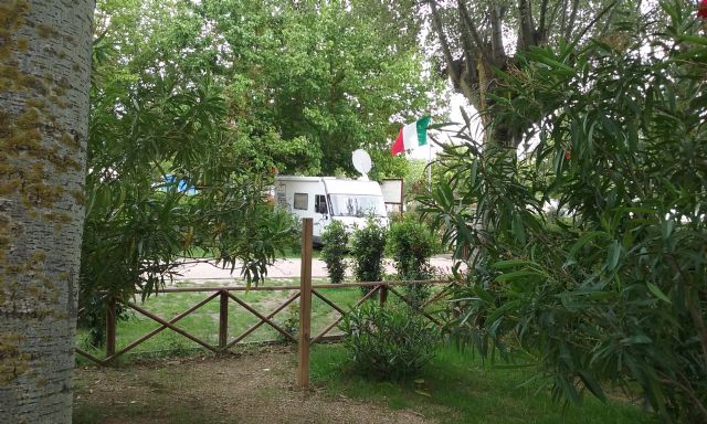 Area ben tenuta, servizi puliti con docce a pagamento. Alimentazione 220 volt sufficiente per il funzionamento del climatizzatore. Acqua disponibile in piazzola e siepi di separazione fra piazzole. Ombreggiata. Zona tranquilla poco distante dal centro. La ferrovia adiacente non reca eccessivo disturbo.