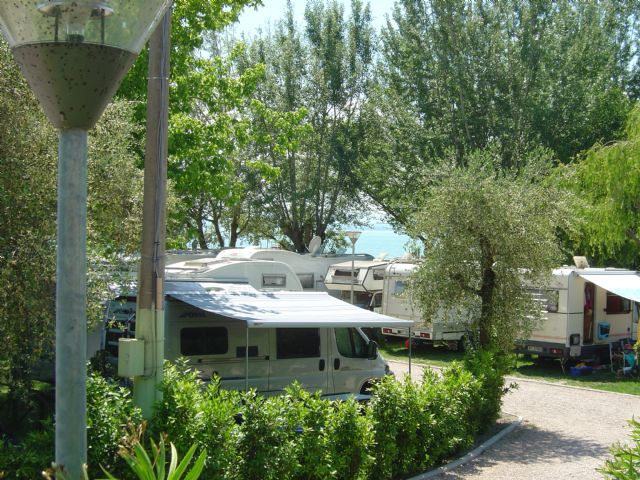 AA ombreggiata a pochi passi dal centro e dal lago con vicina spiaggia e piscina, pulito con, bagni, docce (a pagamento) carico e scarico acque, proprietari disponibilissimi. Due adulti e due bambini 8/4anni €19 compresa elettricità. Consigliatissima!