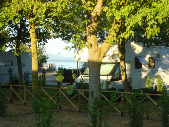 Lungo le rive del lago Trasimeno e a due passi dalla spiaggia e dal centro del paese, area camper pianeggiante, ombreggiata con 18 piazzole su erba servite da colonnine acqua ed allaccio elettrico.