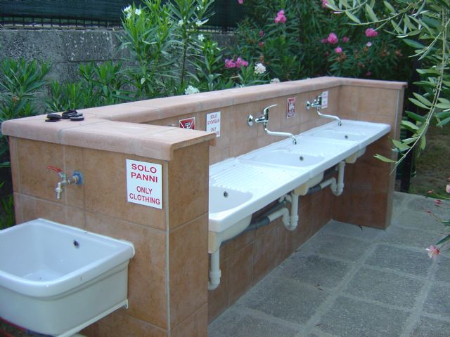 Carico e scarico sia per le reflue che per le cassette WC, blocco sanitario con docce, servizi igienici, lavatoi per stoviglie ed indumenti.