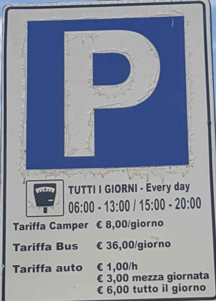 Assolutamente strategica per visita al paese. Tuttavia i servizi andrebbero implementati. Più colonnine elettriche (se vuoi corrente stai attaccato agli altri camper, con poco spazio), scarico praticabile solo con cassetta (no griglia per acqua nera, cioè se hai scarico nautico non puoi scaricare). Anche le grigie, almeno di un travaso, non si scaricano. 8€ non sarebbero tanti, ma di fatto è un parcheggio libero senza servizi.