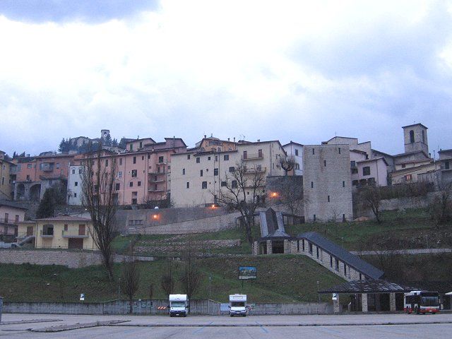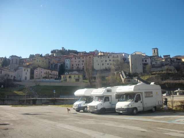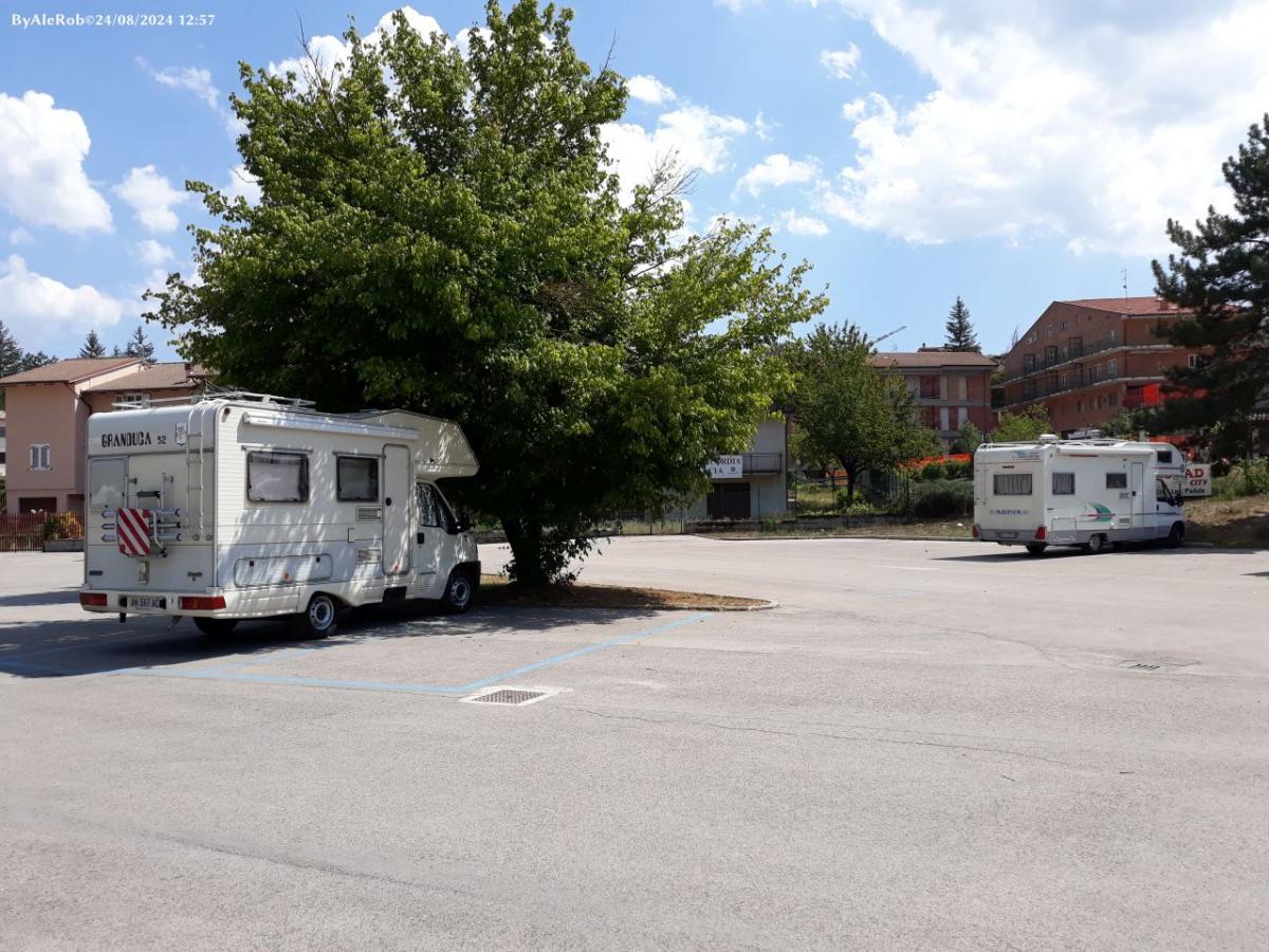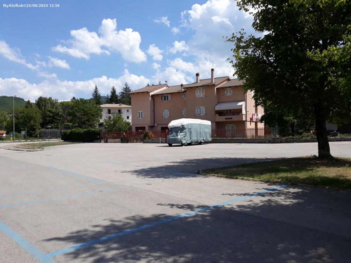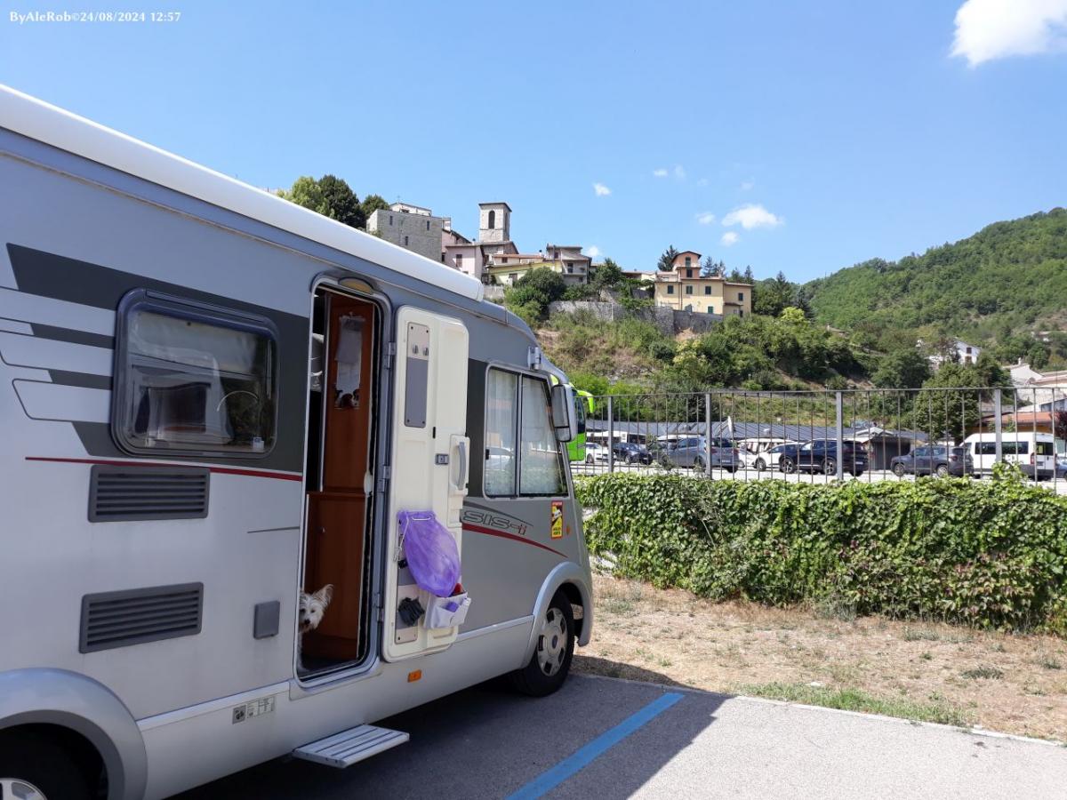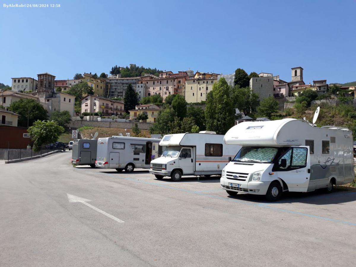 Adiacente al parcheggio dei bus, punto sosta comunale con circa 44 posti e 2 colonnine di corrente per un totale di 8 prese, carico acqua e scarico grigie. Situato all'ingresso del paese e presso le scale mobili per accedere al centro del paese sovrastante.