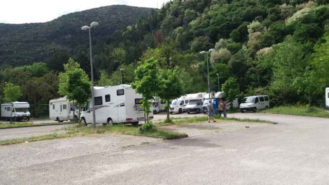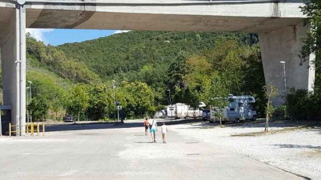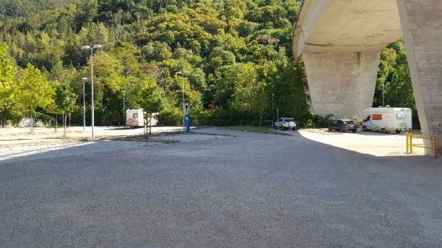 Vicinissima al centro, posti per i camper situati sotto il cavalcavia (quindi abbastanza rumoroso, soprattutto per i camion), qualche schiamazzo notturno, in pendenza. Confermo tariffa.Va bene per una visita in giornata per Spoleto (vista la vicinanza) ma sconsigliata per la notte.