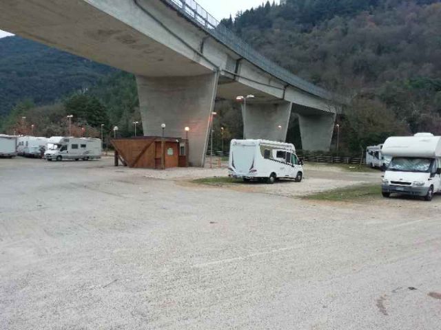 Ottima area sosta con ampi spazi delimitati e vicina alle scale mobili che portano in vari punti di Spoleto e fino alla Rocca. Carico e scarico, manca solo la corrente. Nella notte non sono stata disturbata da cani, ma non escludo che qualche casa vicina ne abbia qualcuno.