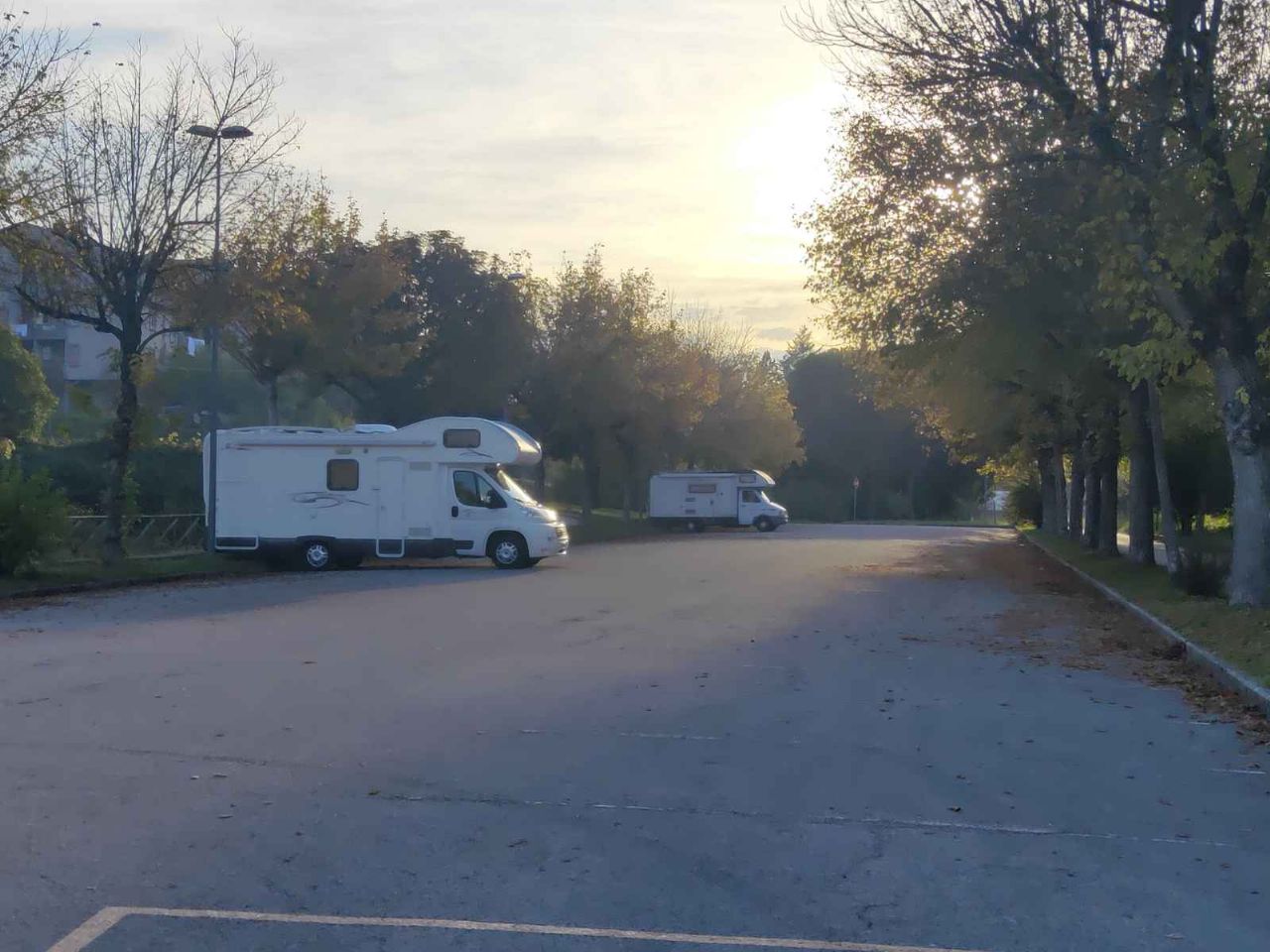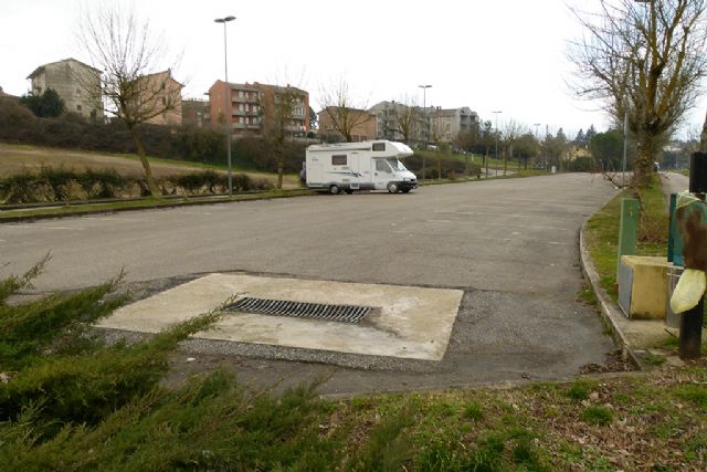 A 300 metri dal centro, punto sosta camper, illuminato, ombreggiato, asfaltato, leggermente in pendenza, dotato di scarico nautico e a cassetta, carico acqua da fontanella.