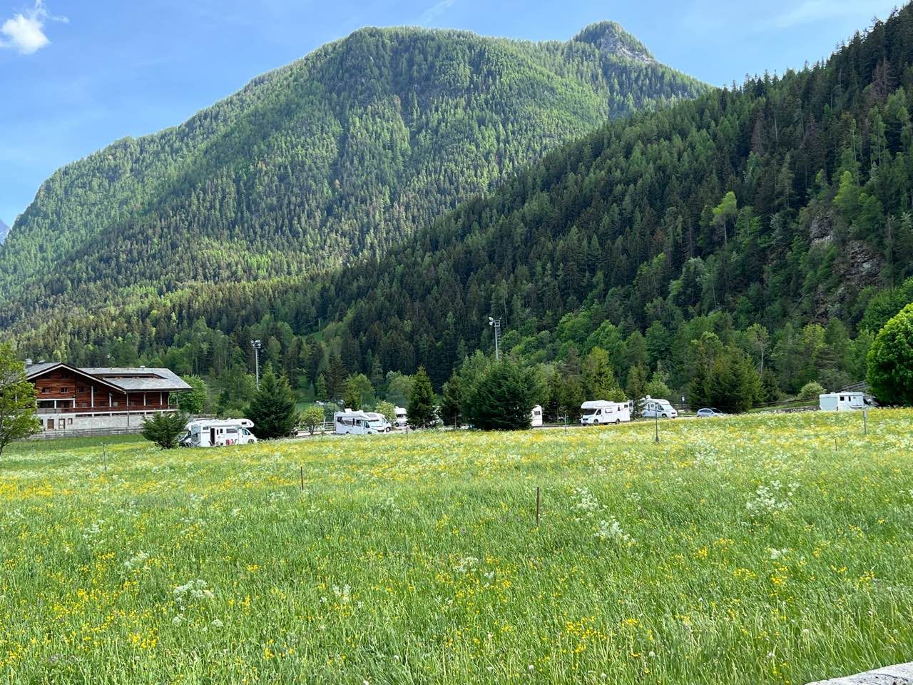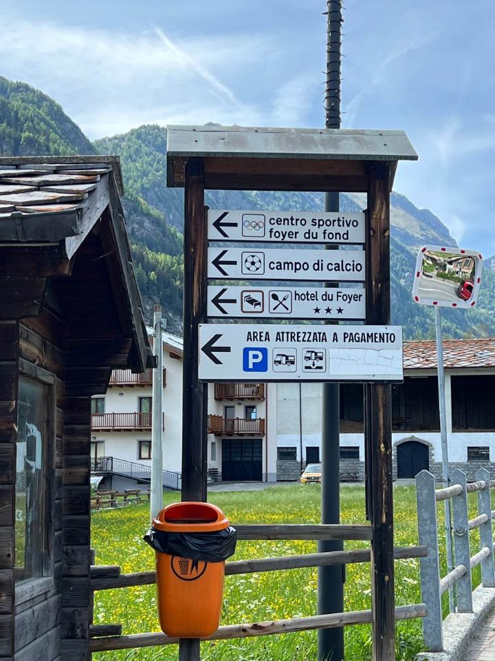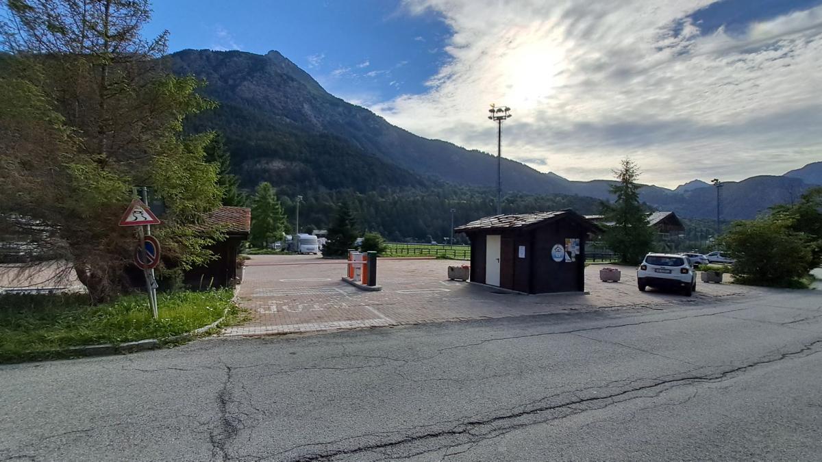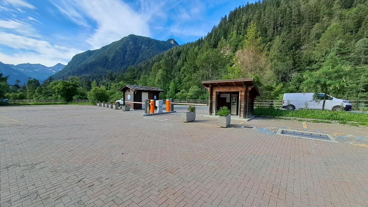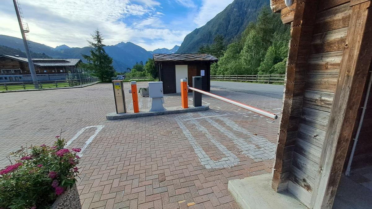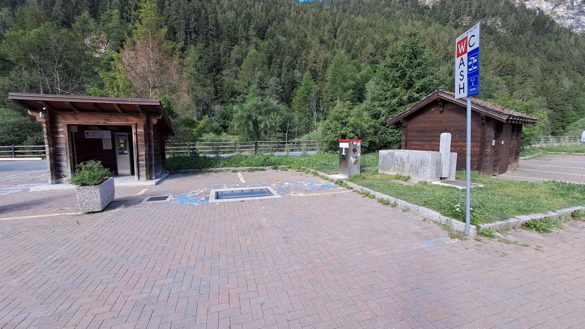 A 1,5 km dal centro e a 700 m dal lago, area comunale per camper lungo il torrente Evancon, segnalata con accesso tramite sbarra, rilascio tessera (cauzione) per accesso e pagamento, stalli su autobloccanti, allacciamento elettrico (non per tutte le postazioni), camper service.