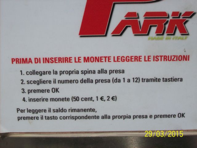 Comoda per visitare il centro città, 220V prezzo fuori mercato, se ti muovi in camper si rivendono il posto, pur avendolo pagato anticipatamente per due giorni.