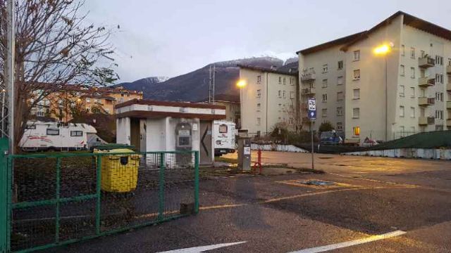 Area di sosta a pagamento a poca distanza dal centro raggiungibile a piedi. Mercatini di Natale a 10 minuti di strada. 1/h dalle 8 alle 20, libero notturno, con carico e scarico gratuito ma senza allaccio elettrico. pagamento automatizzato anche con carta. Ideale per visitare la citt.