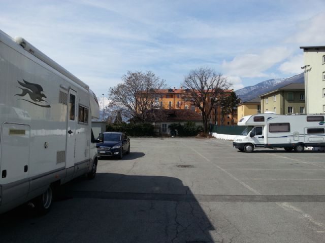 In estate settimana di Ferragosto è una discreta soluzione per vedere Aosta: a due passi dal centro città, ad 1 euro l'ora, camper service ma niente, niente di più.