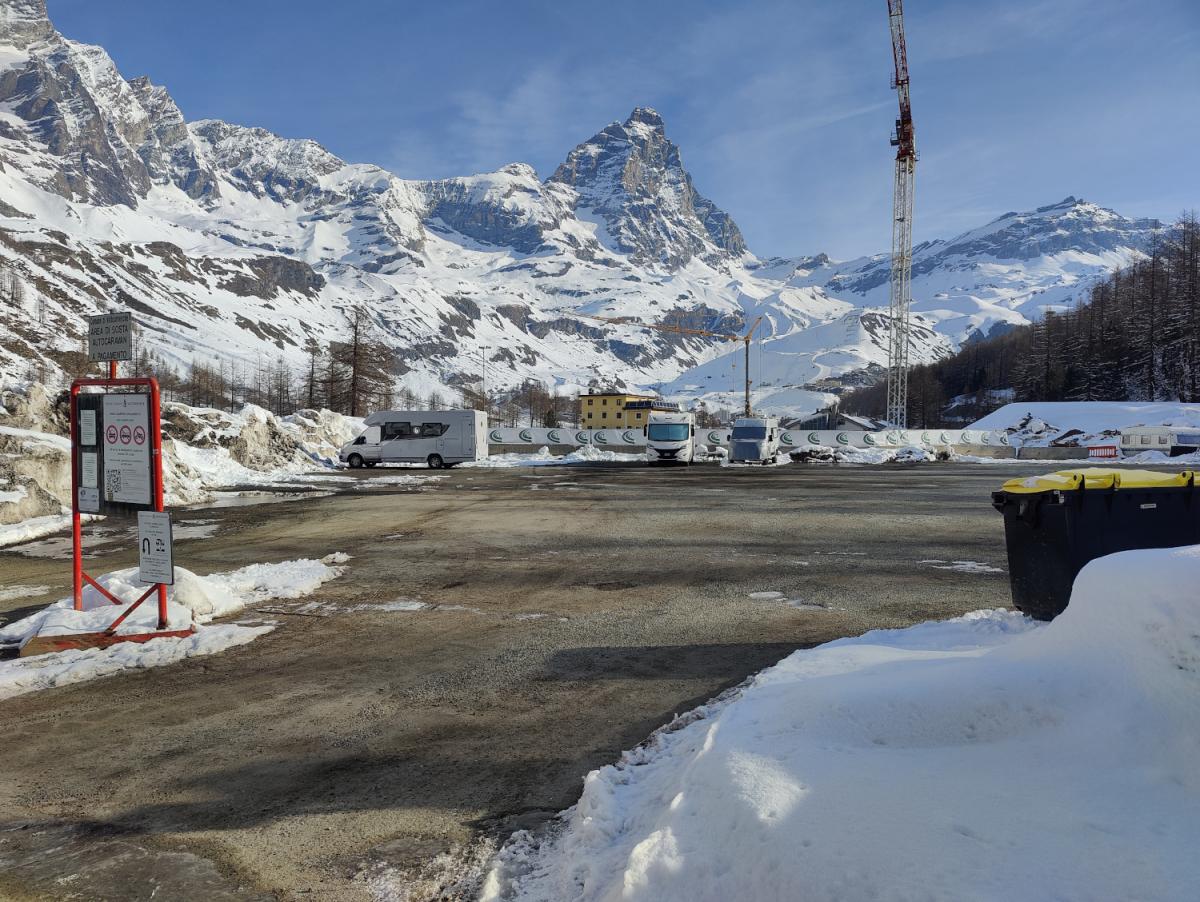 Buona area di sosta camper a 1 km da Cervinia. Si paga al custode quando arriva, 7,80 euro a camper. Carico e scarico da rivedere visto che per caricare l'acqua potabile occorre un po' troppo. Per il resto vista bellissima sul Cervino!